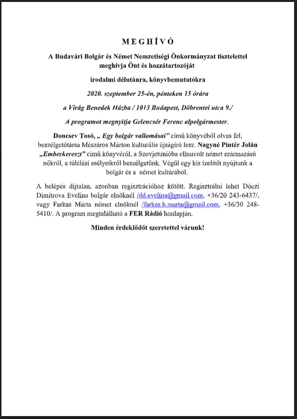 Budavári Bolgár és Német Nemzetiségi Önkormányzati Meghívó